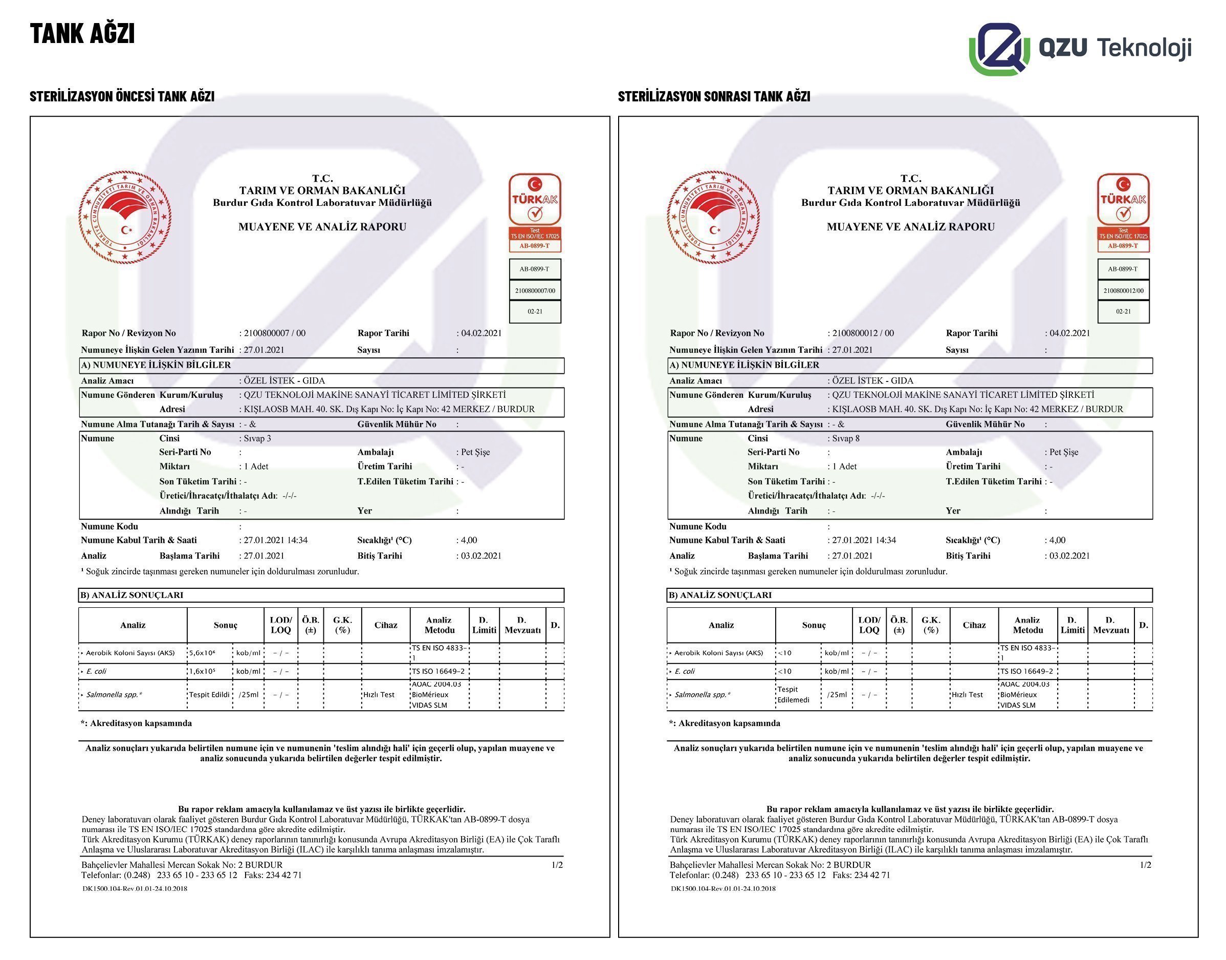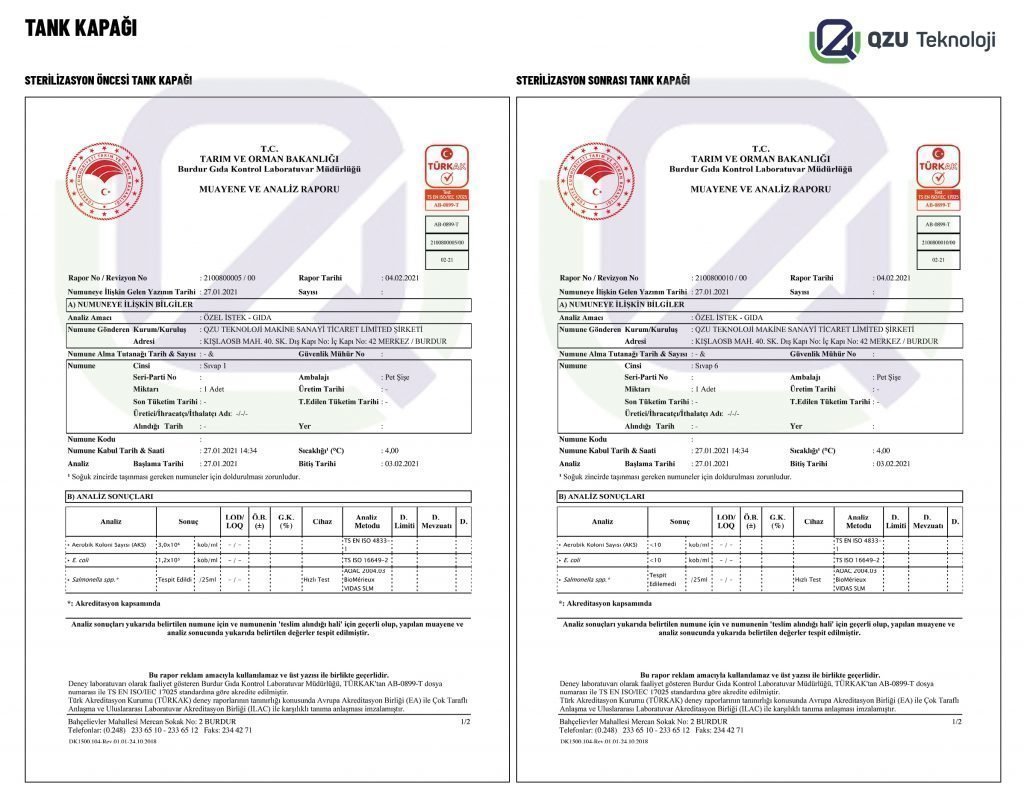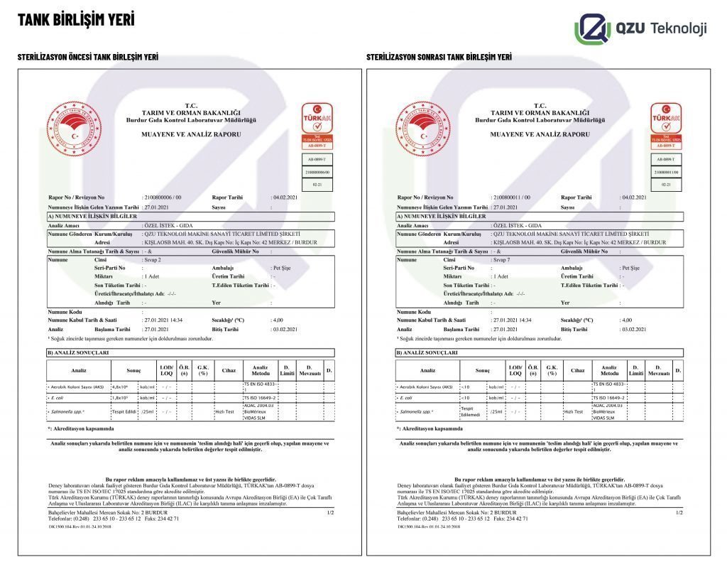 Süt soğutma tankı sterilasyon cihazı deney raporu