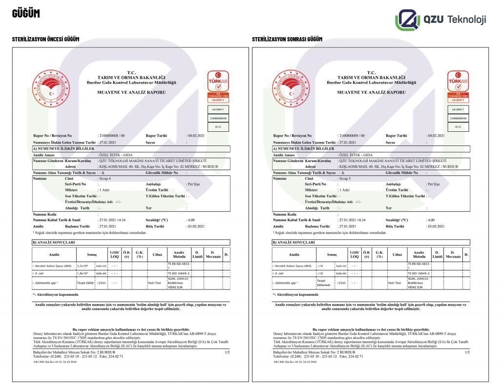 Süt güğümü sterilasyon cihazı deney raporu
